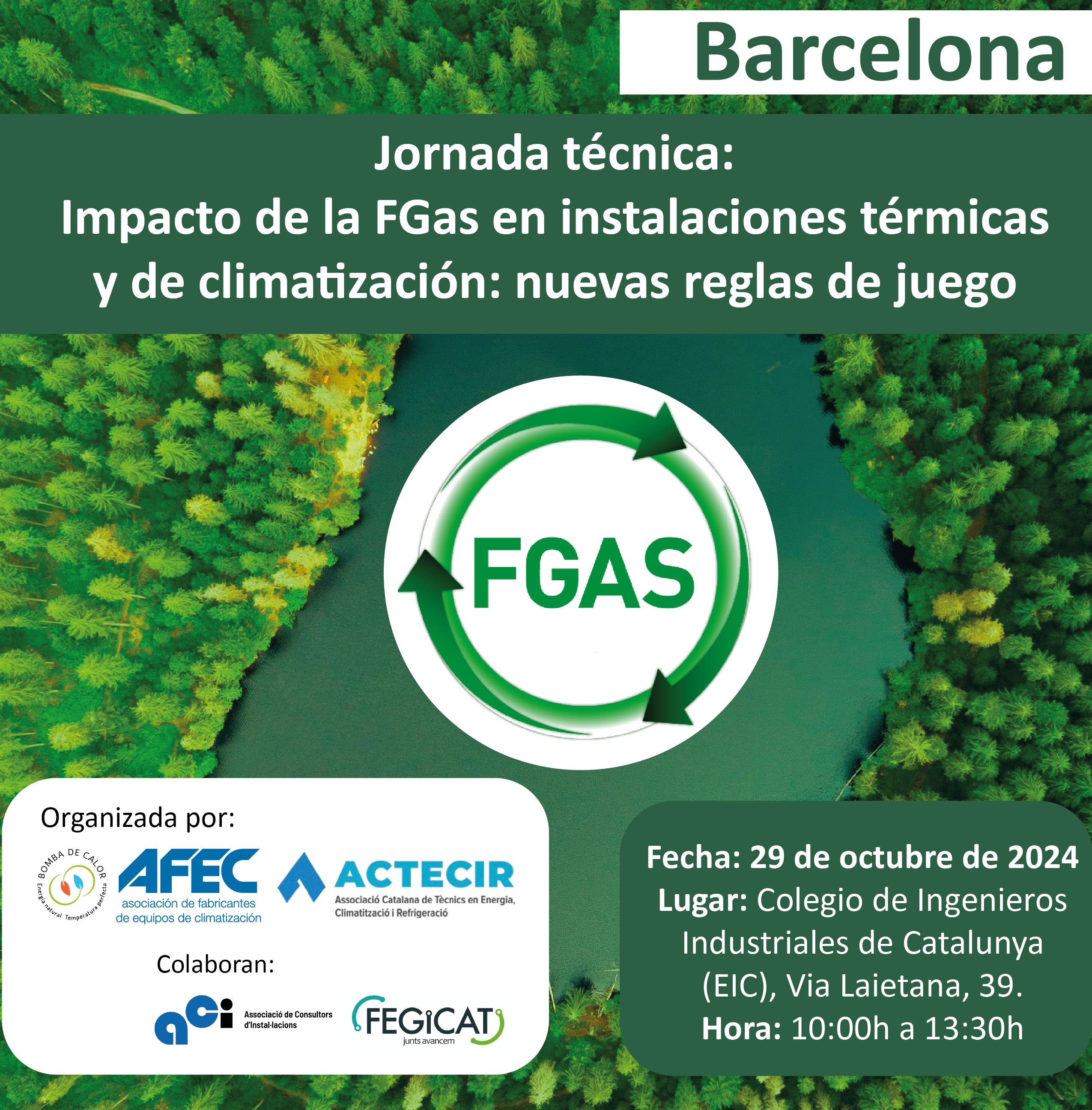 El próximo martes, 29 de octubre de 2024, Barcelona será sede de un nuevo encuentro sobre el nuevo reglamento FGas, organizado por la Asociación de Fabricantes de Equipos de Climatización (AFEC) en colaboración con ACTECIR (Associació Catalana de Tècnics en Energia, Climatització i Refrigeració), que cuenta con el soporte de la Generalitat de Catalunya y con la cooperación de ACI (Asociació de Consultors d’Instal·lacions) y FEGICAT (Federació de Gremis d’Instal·ladors de Catalunya). La jornada tendrá lugar en el Colegio de Ingenieros Industriales de Catalunya (EIC), situado en Via Laietana, 39.