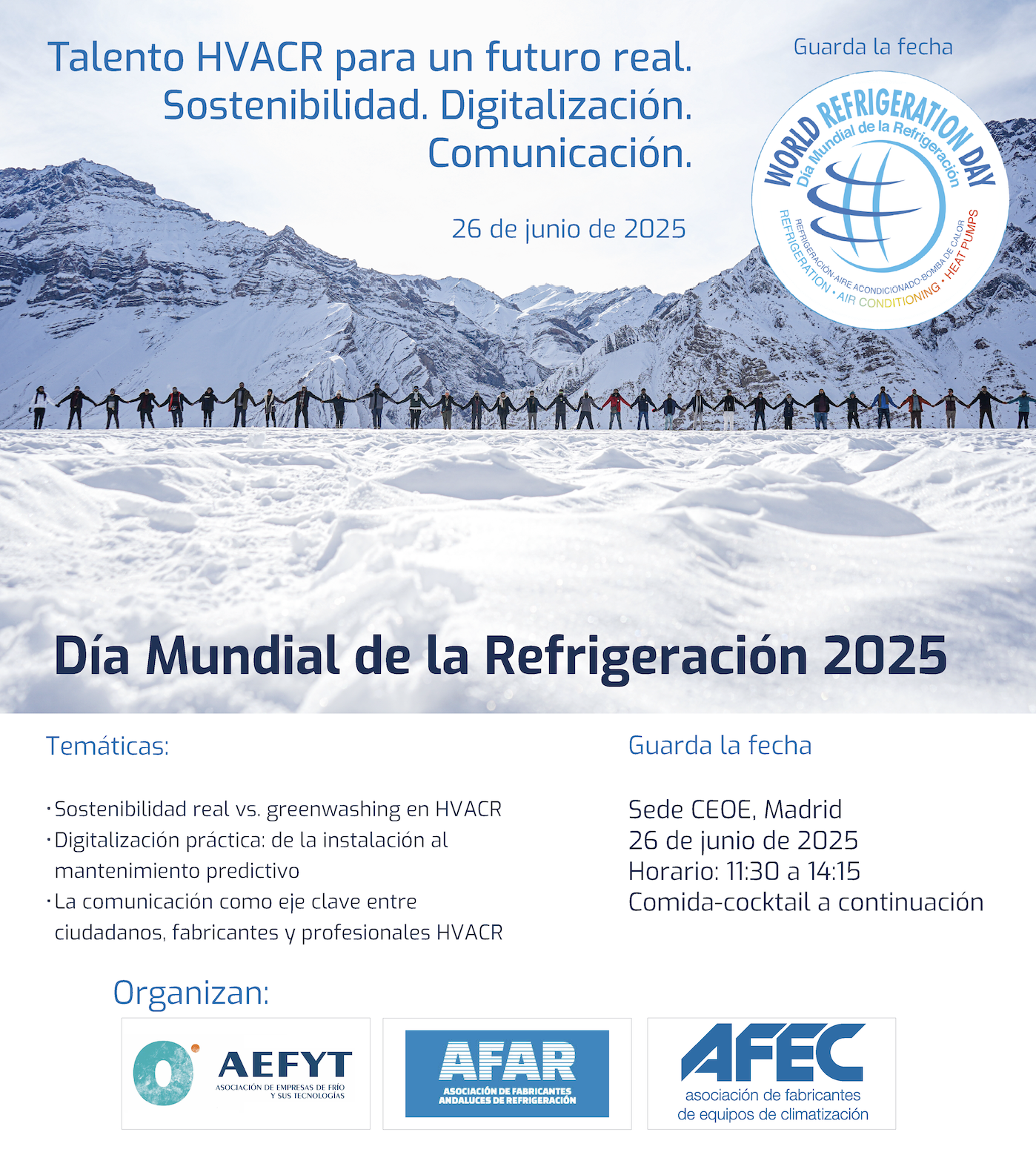 Por séptimo año consecutivo, España se suma a la celebración del Día Mundial de la Refrigeración, reuniendo a profesionales y representantes de toda la cadena de valor del sector de la refrigeración, climatización y bombas de calor.